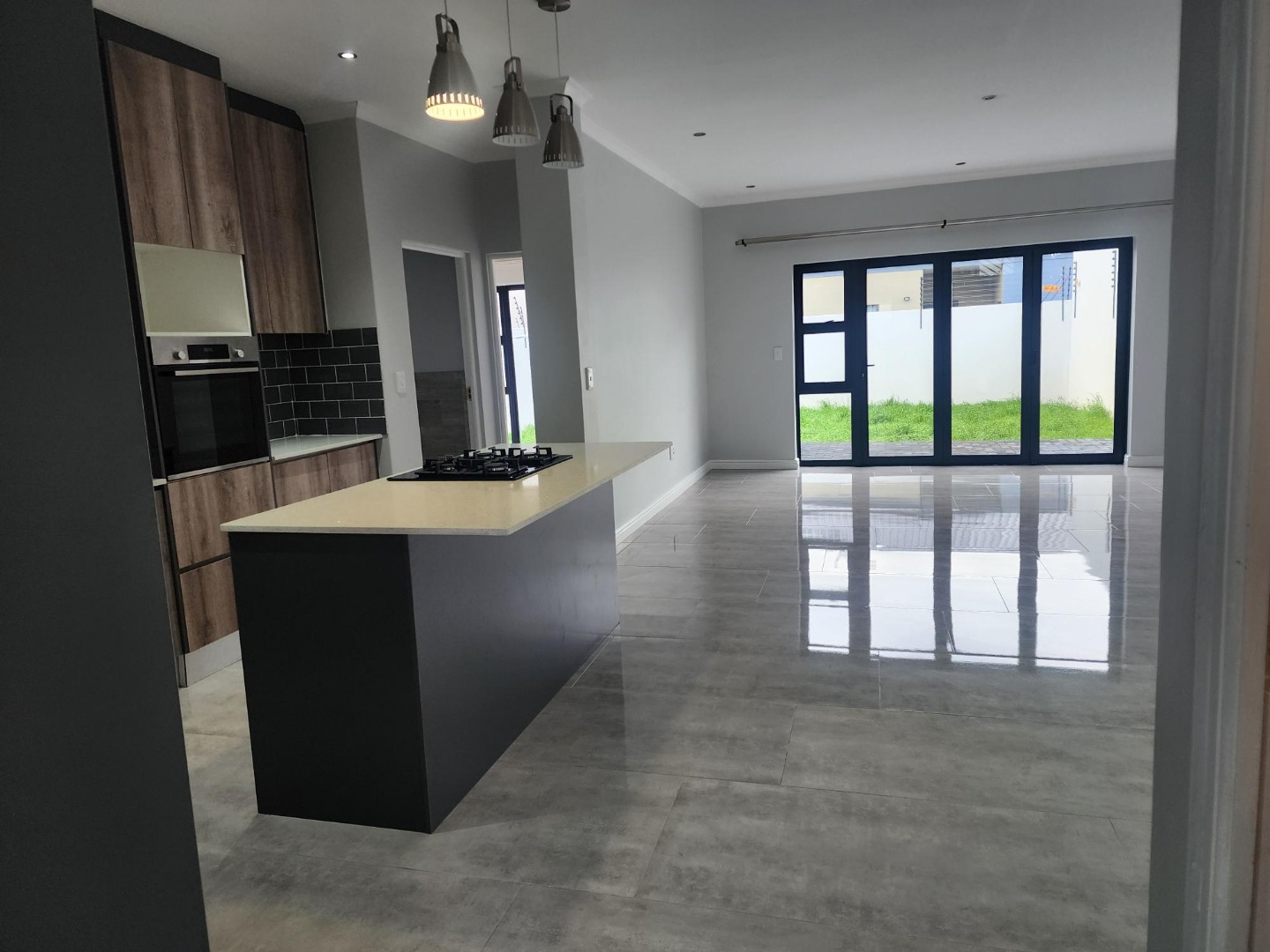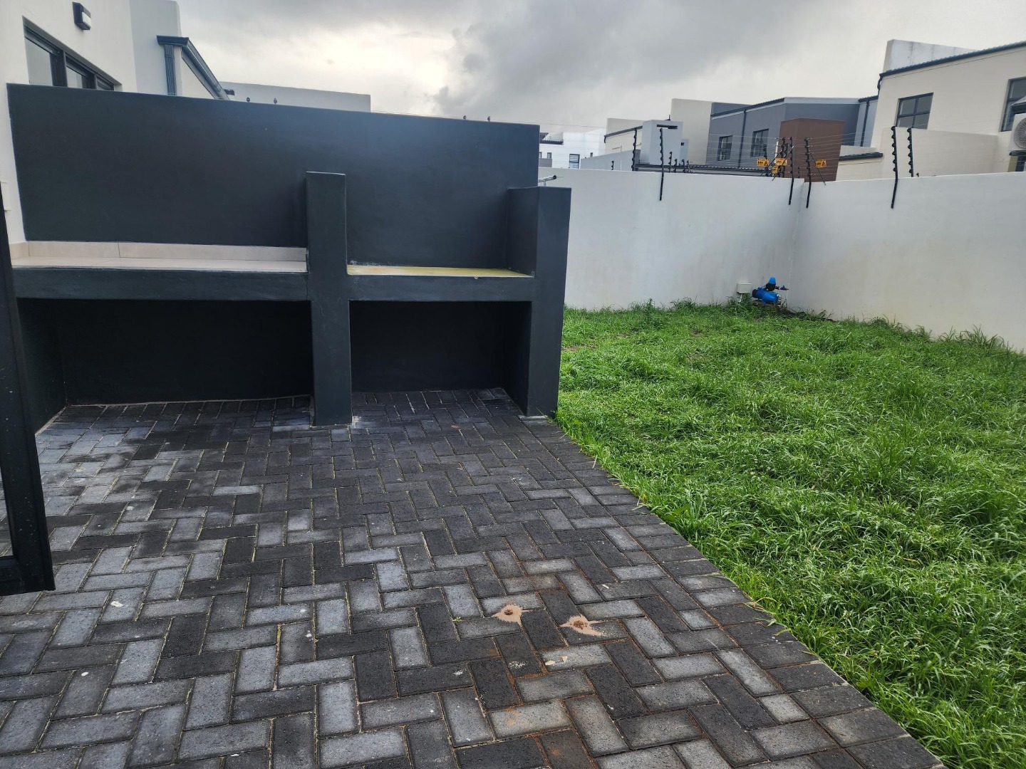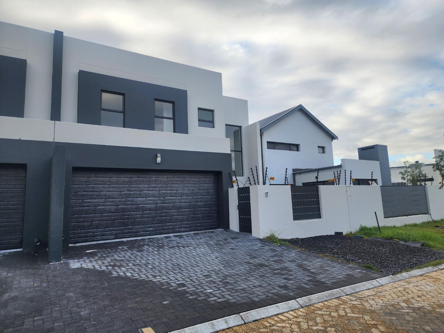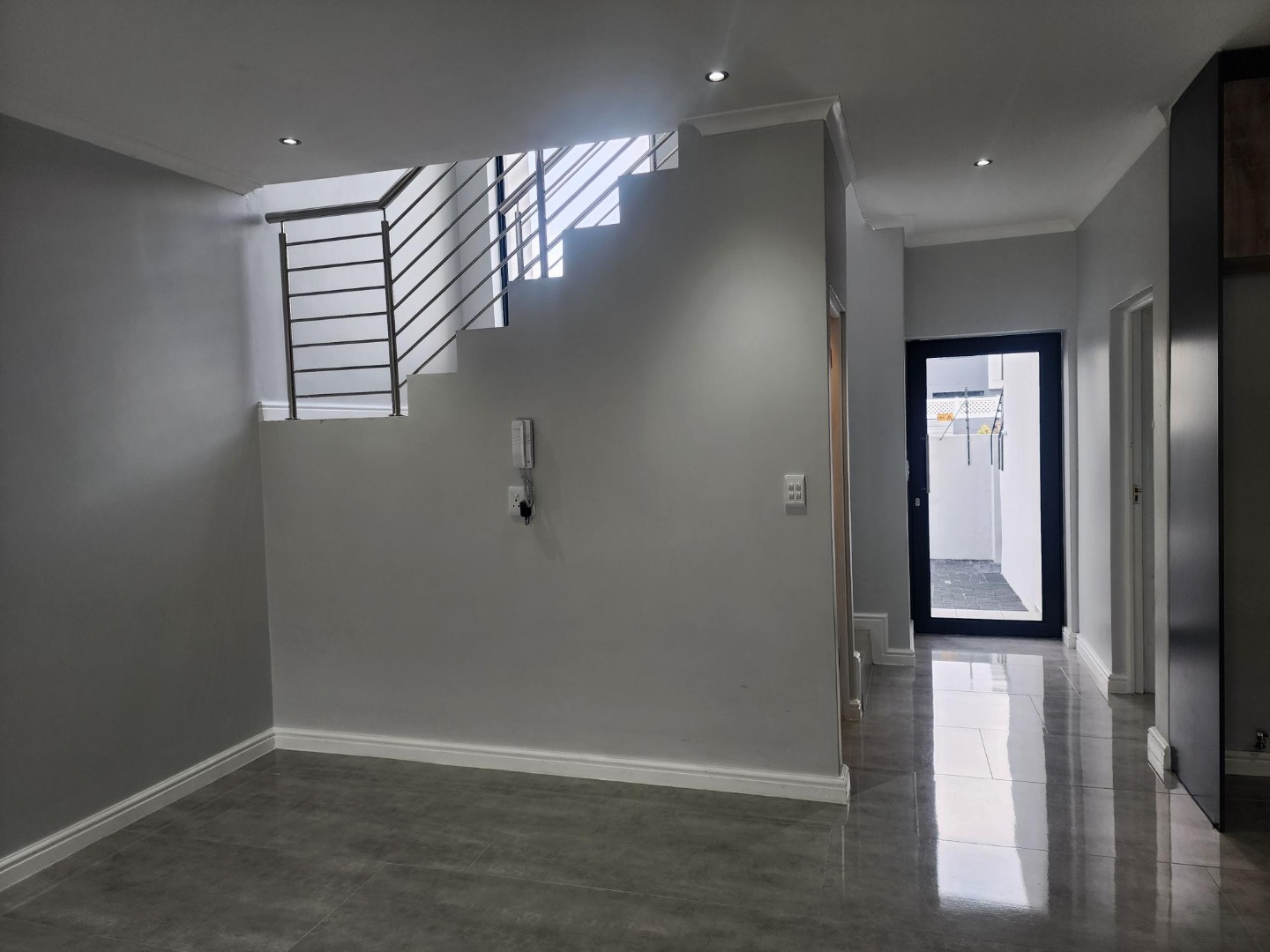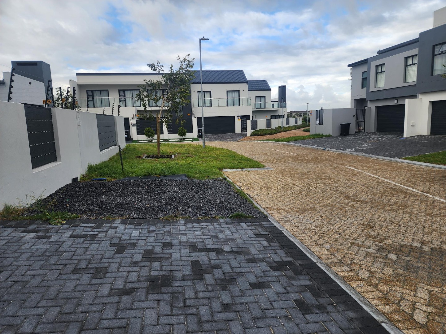 Modern double storey home - located in the security pocket of Sandown * Downstairs - Open plan living areas are enjoyed by a modern kitchen with an eye level oven, gas hob and centre island * separate scullery area * Fourth bedroom / office with bic is located on the ground floor * Guest toilet * store room * Upstairs bedrooms have vinyl flooring and bic's * there is the master suite with an en-suite bathroom * Two additional bedrooms share a full family bathroom * Double Auto garage with direct access * stacker doors lead to the outdoor paved BBQ patio and enclosed garden with a well point * Security is fitted with an alarm and electric fencing and patrols * wifi to the unit * electricity is prepaid * close to schools, local amenities and MyCiti bus routes *
