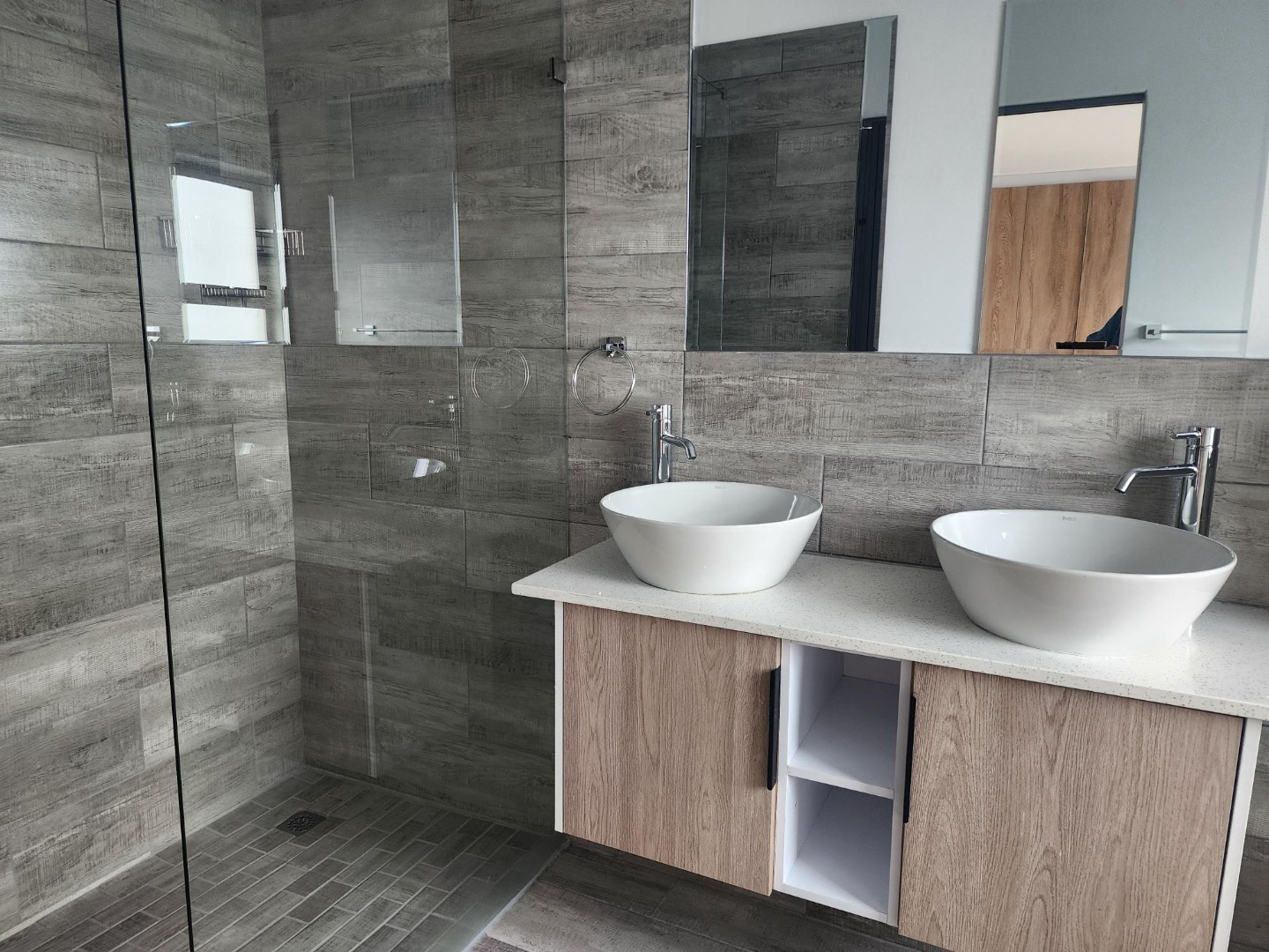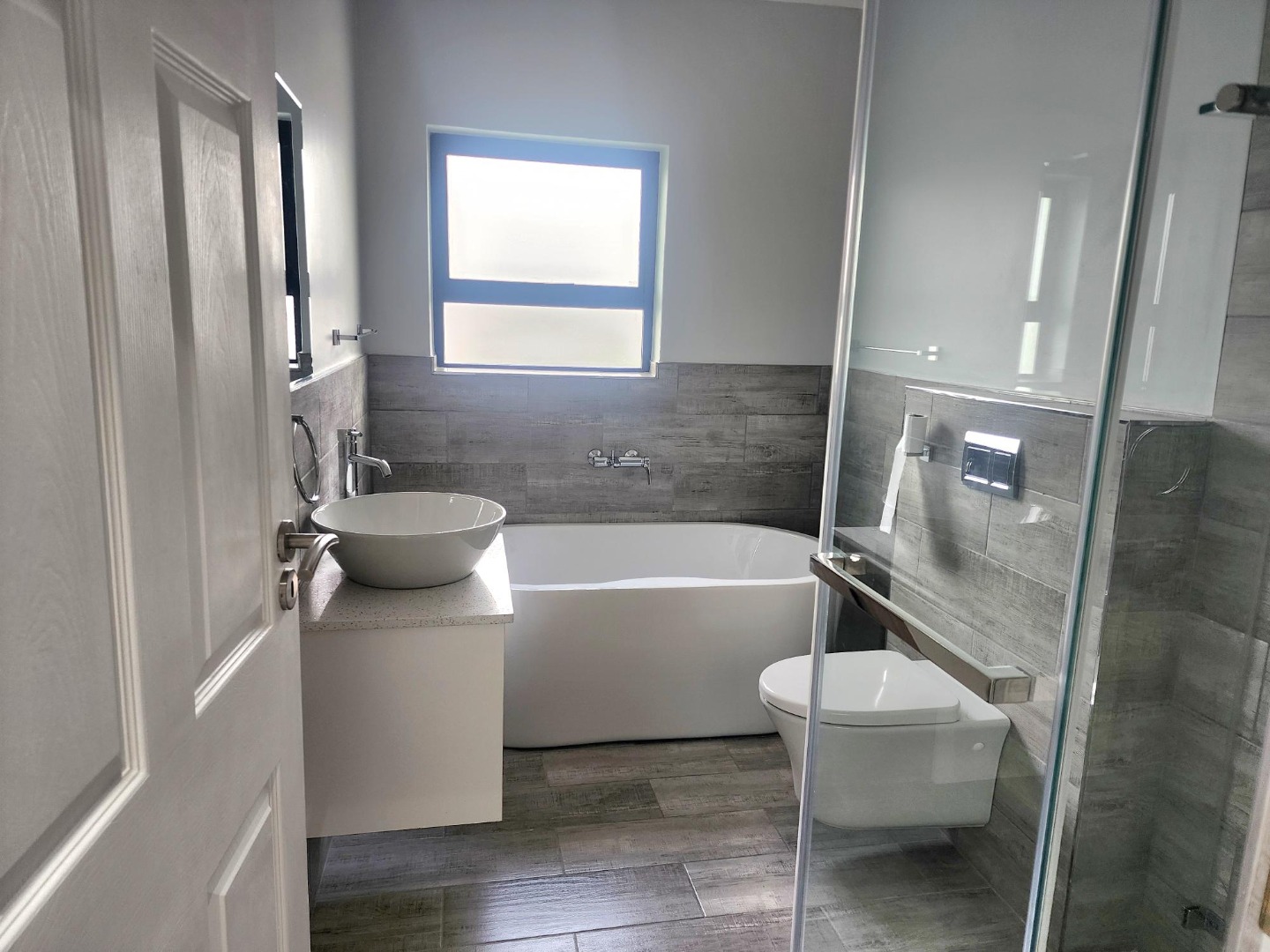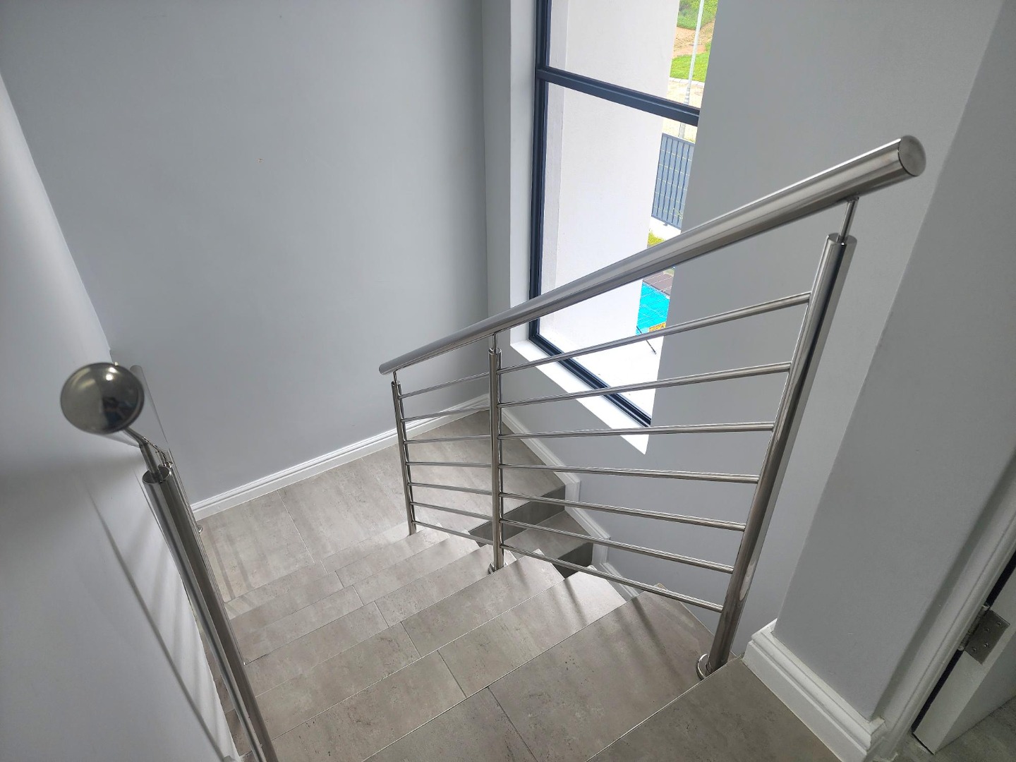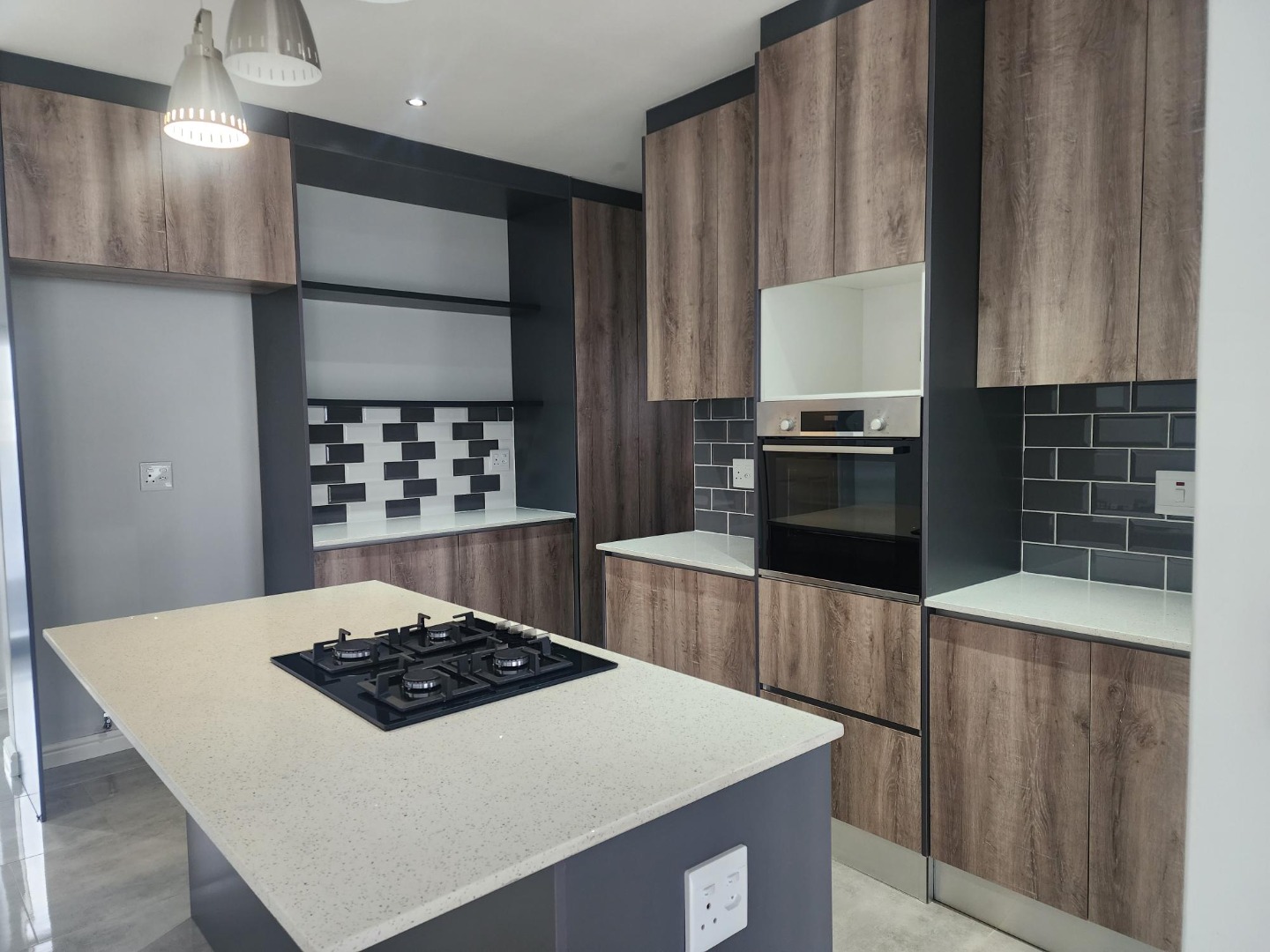 Modern double storey home - located in the security pocket of Sandown * Downstairs - Open plan living areas are enjoyed by a modern kitchen with an eye level oven, gas hob and centre island * separate scullery area * Fourth bedroom / office with bic is located on the ground floor * Guest toilet * store room * Upstairs bedrooms have vinyl flooring and bic's * there is the master suite with an en-suite bathroom * Two additional bedrooms share a full family bathroom * Double Auto garage with direct access * stacker doors lead to the outdoor paved BBQ patio and enclosed garden with a well point * Security is fitted with an alarm and electric fencing and patrols * wifi to the unit * electricity is prepaid * close to schools, local amenities and MyCiti bus routes *