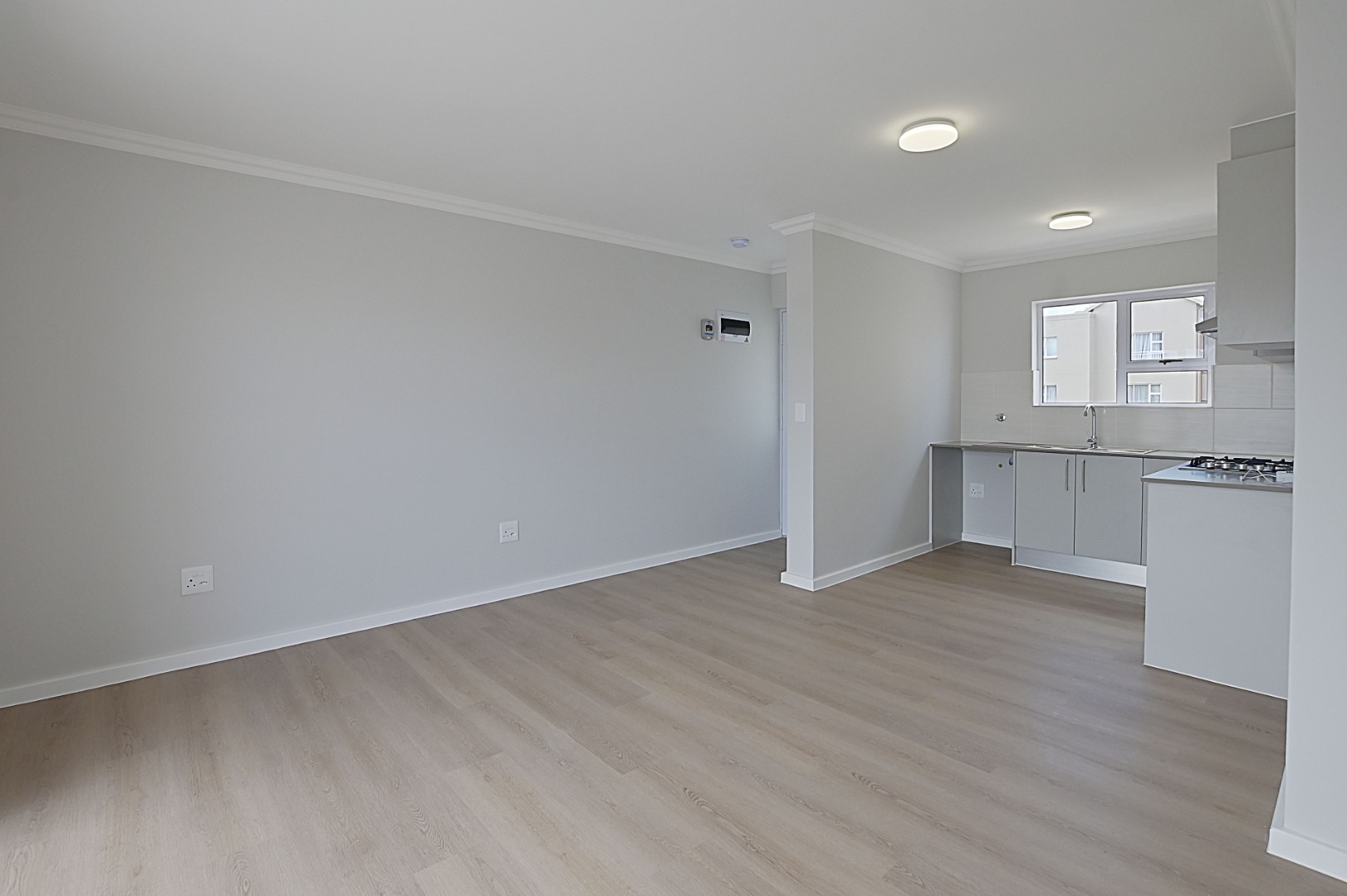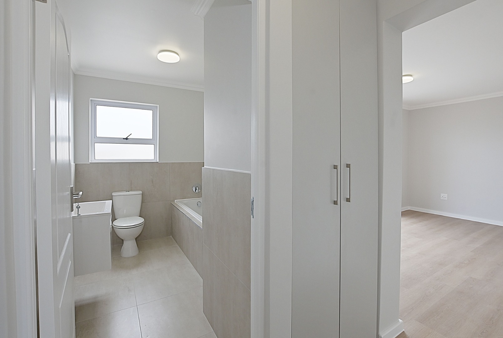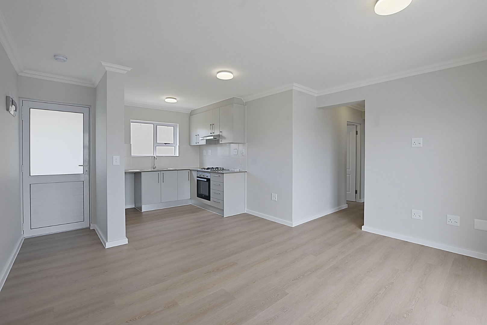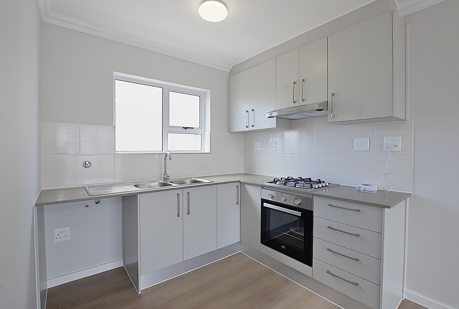 Kitchen fitted with double sink, electric stove, gas hob and to me, enough cupboard space. Outlet for dishwasher, and in the passage, another "hidden" surprise with outlet for a washing machine.