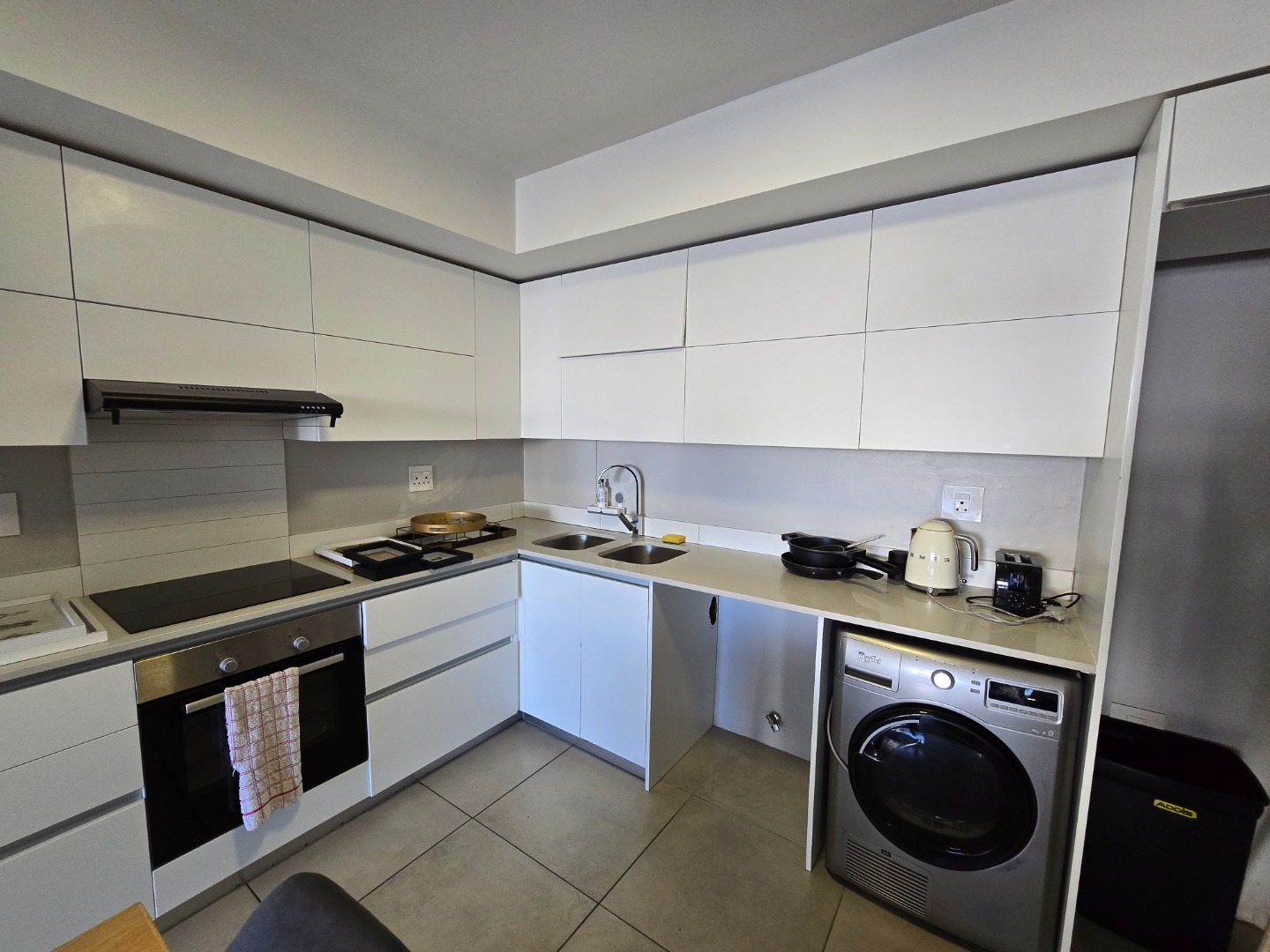 glass hob, oven & extractor fan, as well as plumbing for a washing machine and dishwasher.