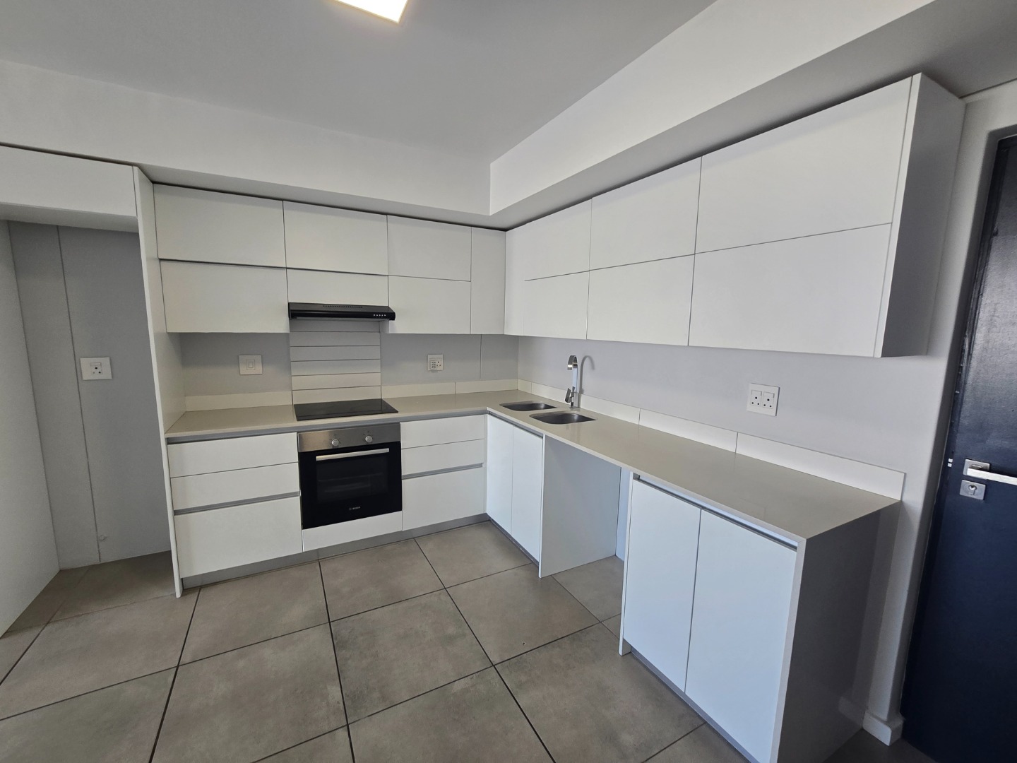 On entering you are welcomed into the open plan kitchen, finished with white stone tops & ample built-in cupboards, finished in white. There is