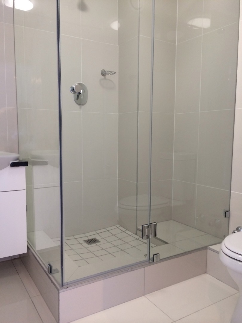 Bathroom with shower, heated towel rail and contemporary finishes throughout