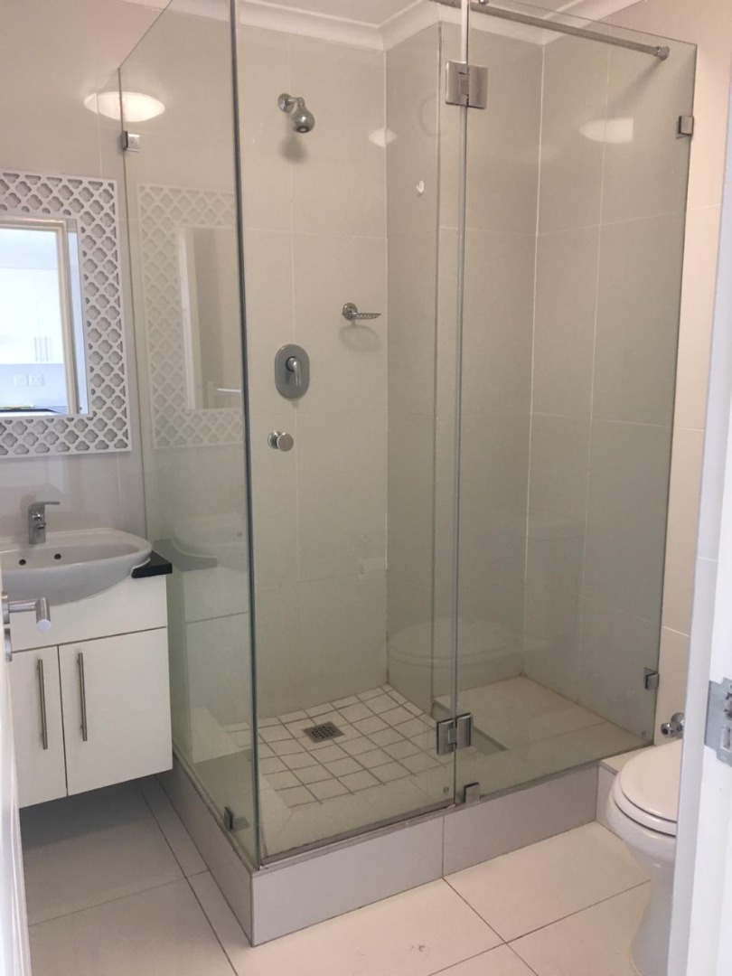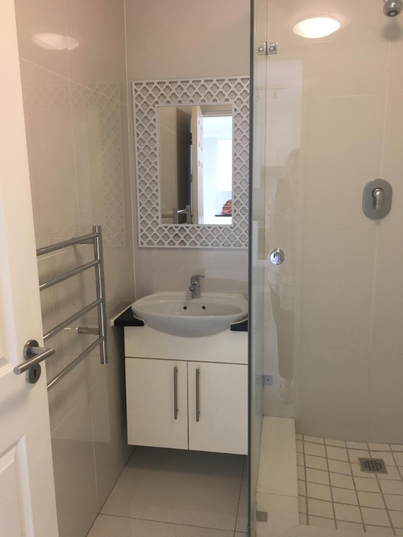 Bathroom with shower, heated towel rail and contemporary finishes throughout