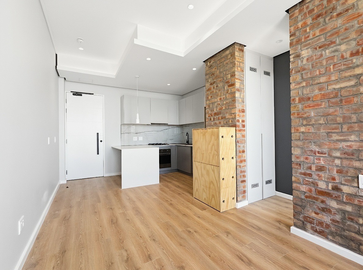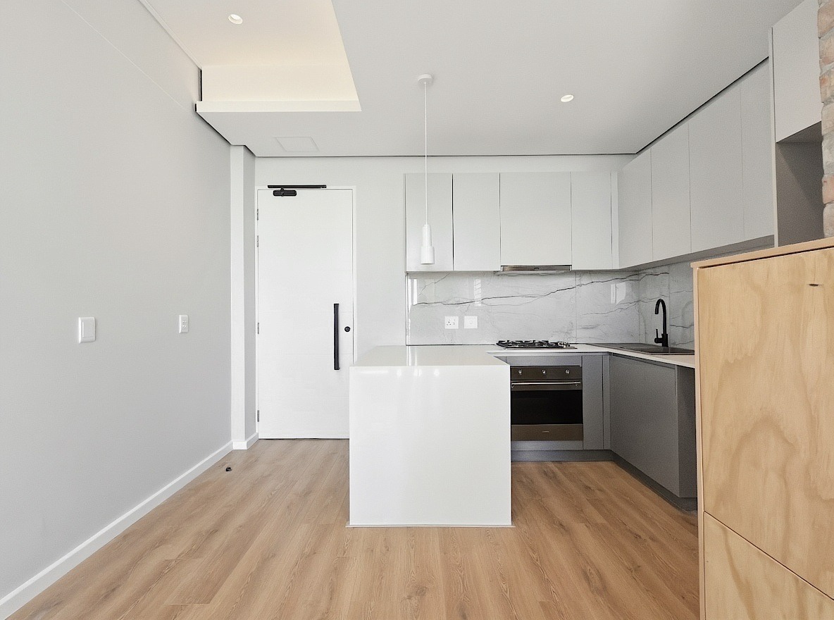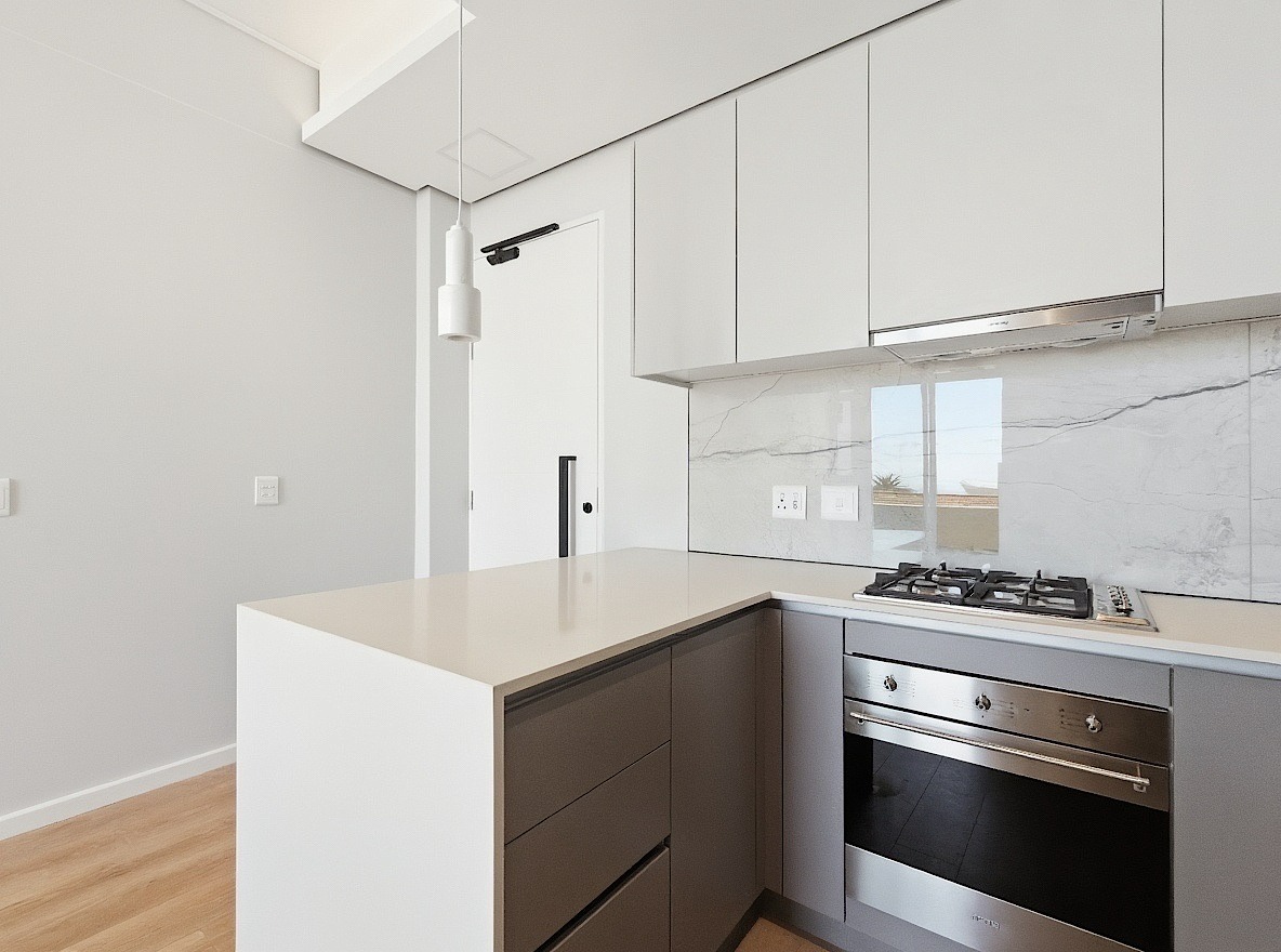 This unfurnished one-bedroom apartment is located in the newly developed Alto Livello complex in Green Point. The bedroom includes a walk-in closet and an en-suite bathroom fitted with a shower, basin, and toilet. Both the bedroom and the open-plan living area open onto a balcony with phenomenal ocean views.