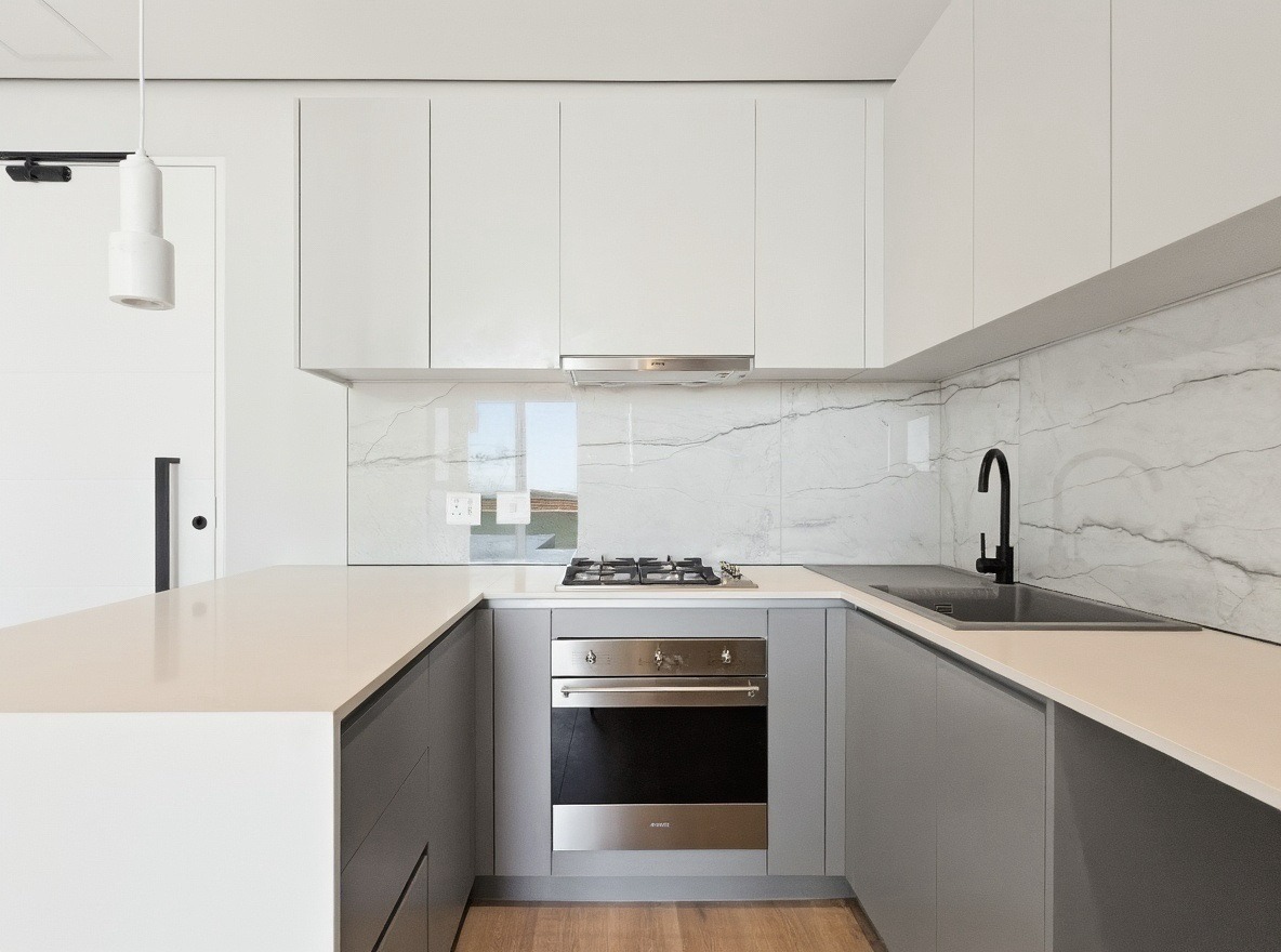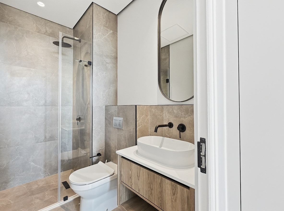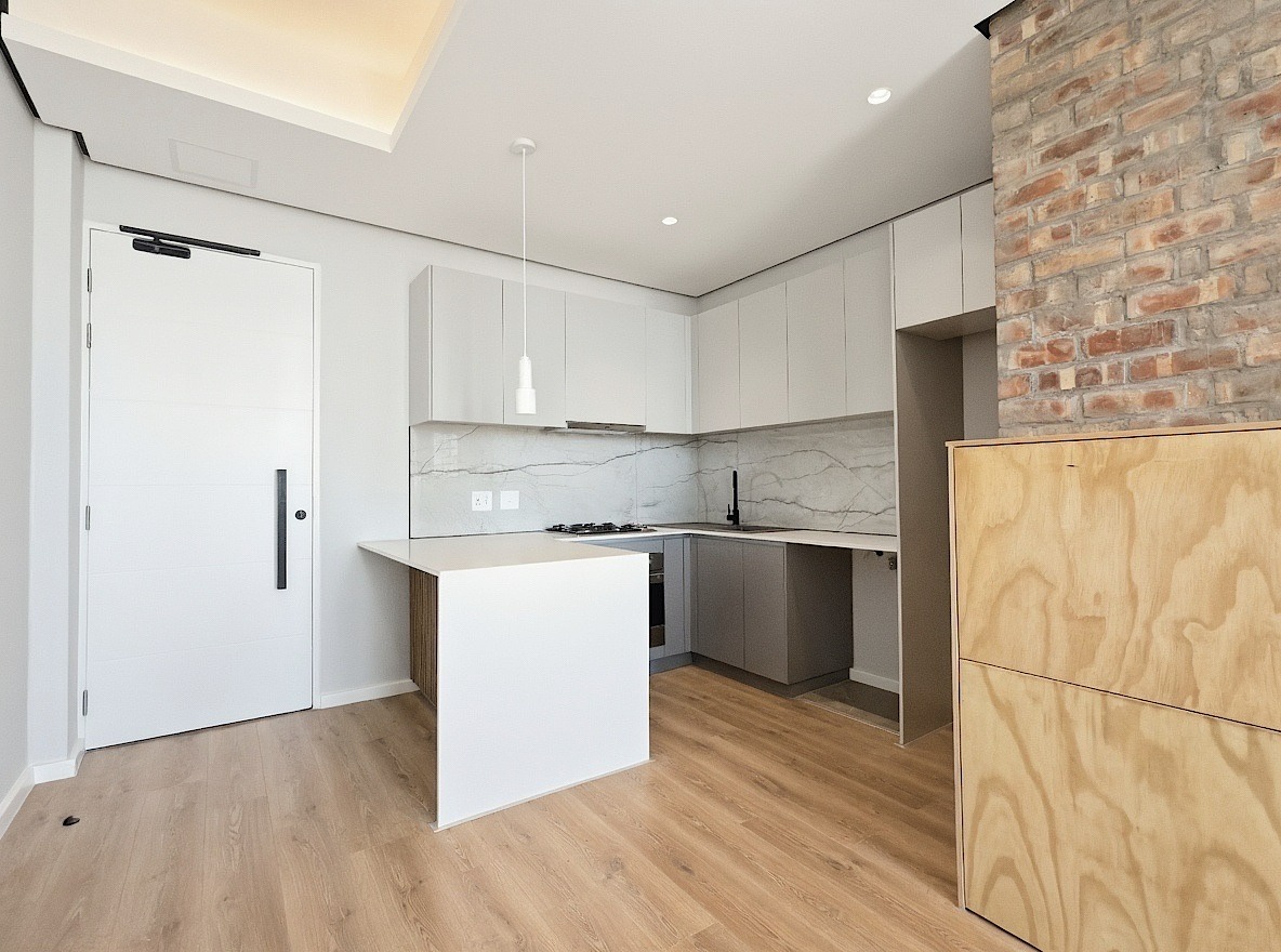 This unfurnished one-bedroom apartment is located in the newly developed Alto Livello complex in Green Point. The bedroom includes a walk-in closet and an en-suite bathroom fitted with a shower, basin, and toilet. Both the bedroom and the open-plan living area open onto a balcony with phenomenal ocean views.