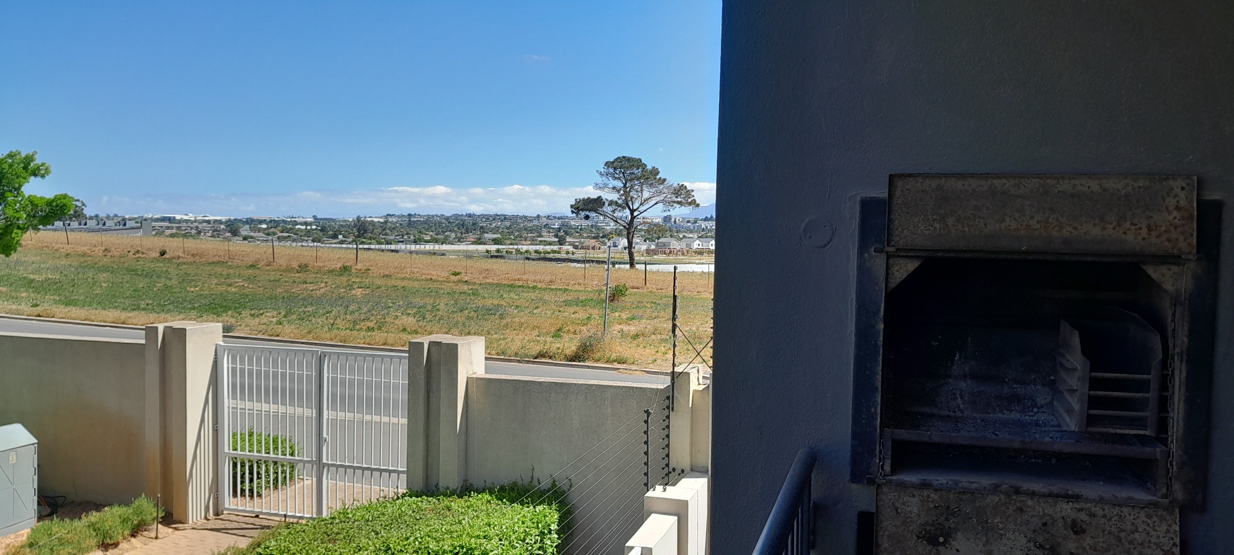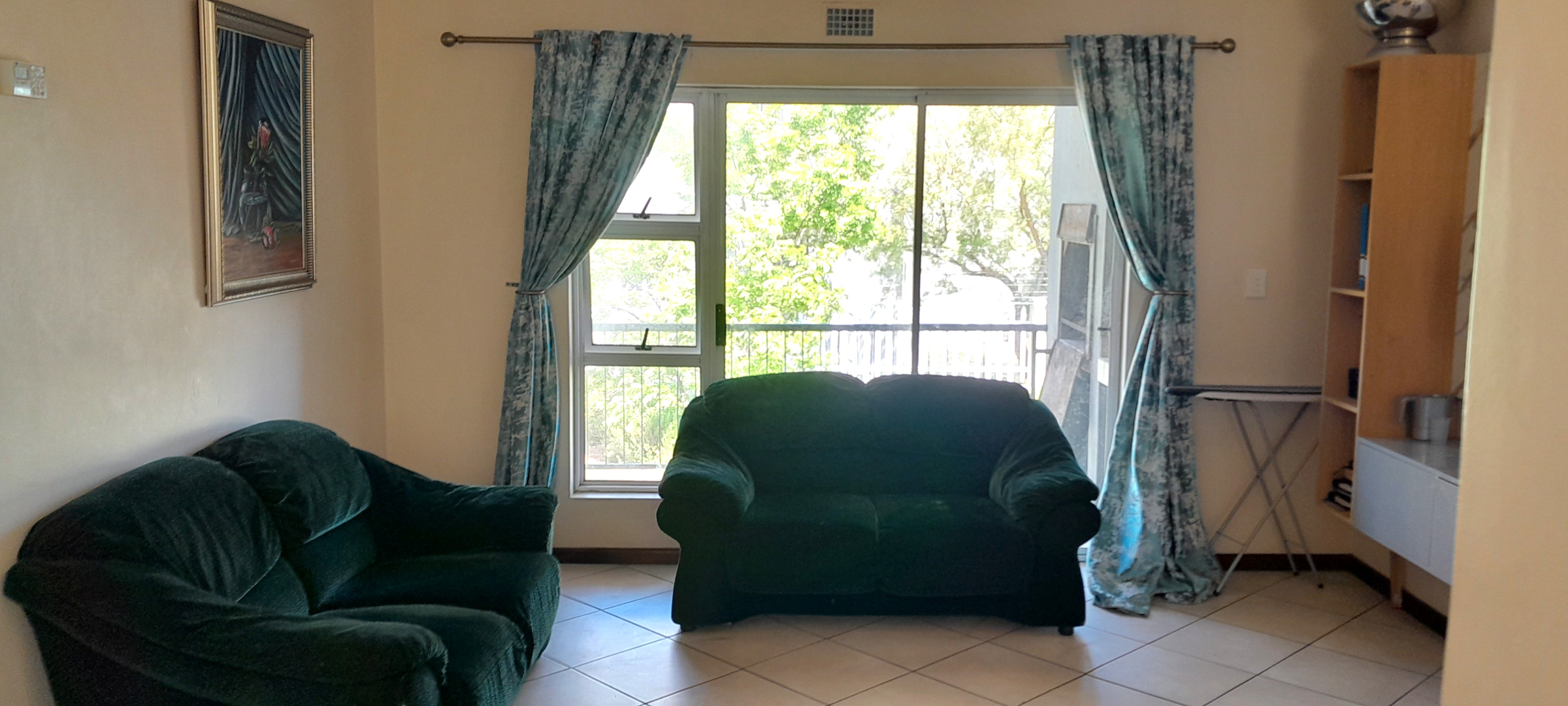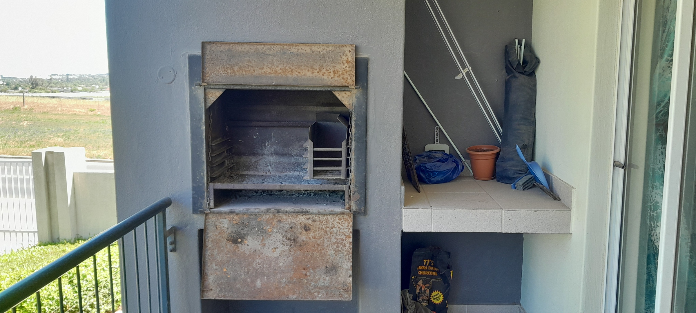 This spacious apartment is situated on the first floor and is a corner unit that hosts beautiful views. The apartment comprises of a spacious living room that flows in to the kitchen and also opens up onto a spacious balcony. The Kitchen has an electric oven and hob and also a water point for a washing machine. The balcony has a built in braai and hosts a beautiful view. There is a full bathroom that consists of a shower, bath, toilet and basin. Both bedrooms are spacious and each one has built in cupboards.