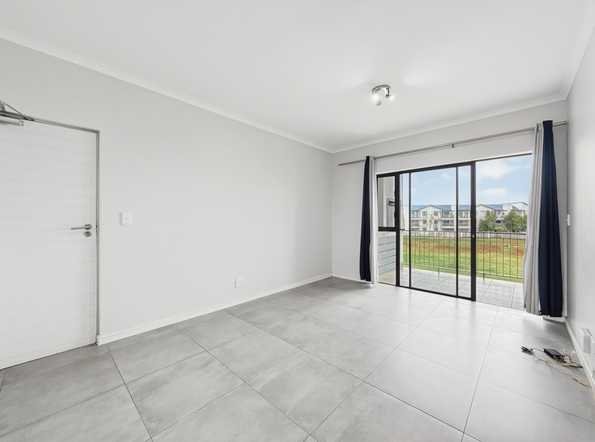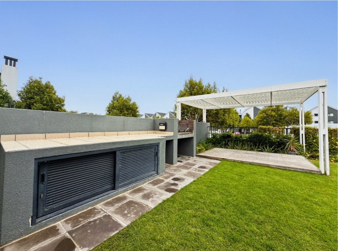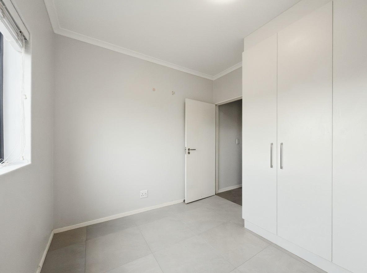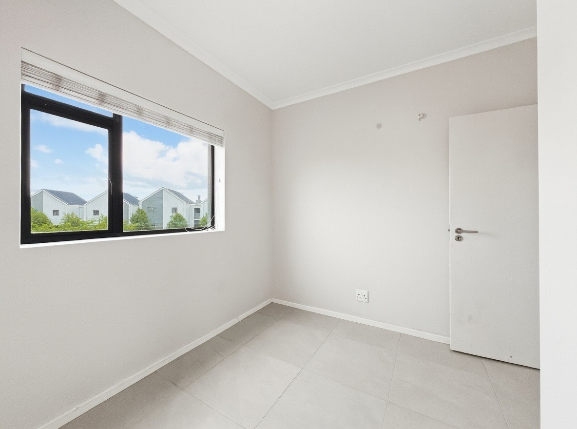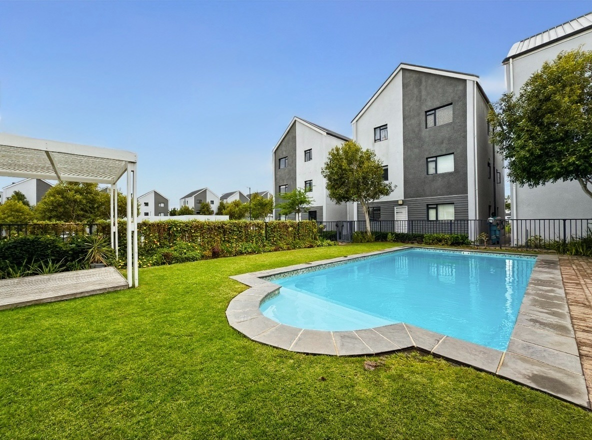 The security estate offers a swimming pool, a small communal braai area, and a shared laundry facility. One allocated open parking bay is included. Security features include access-controlled entry and 24-hour security.