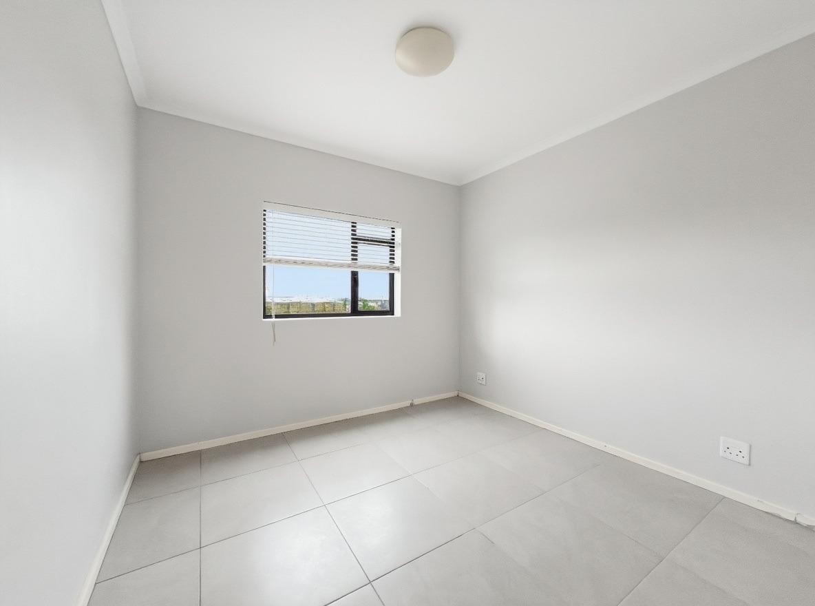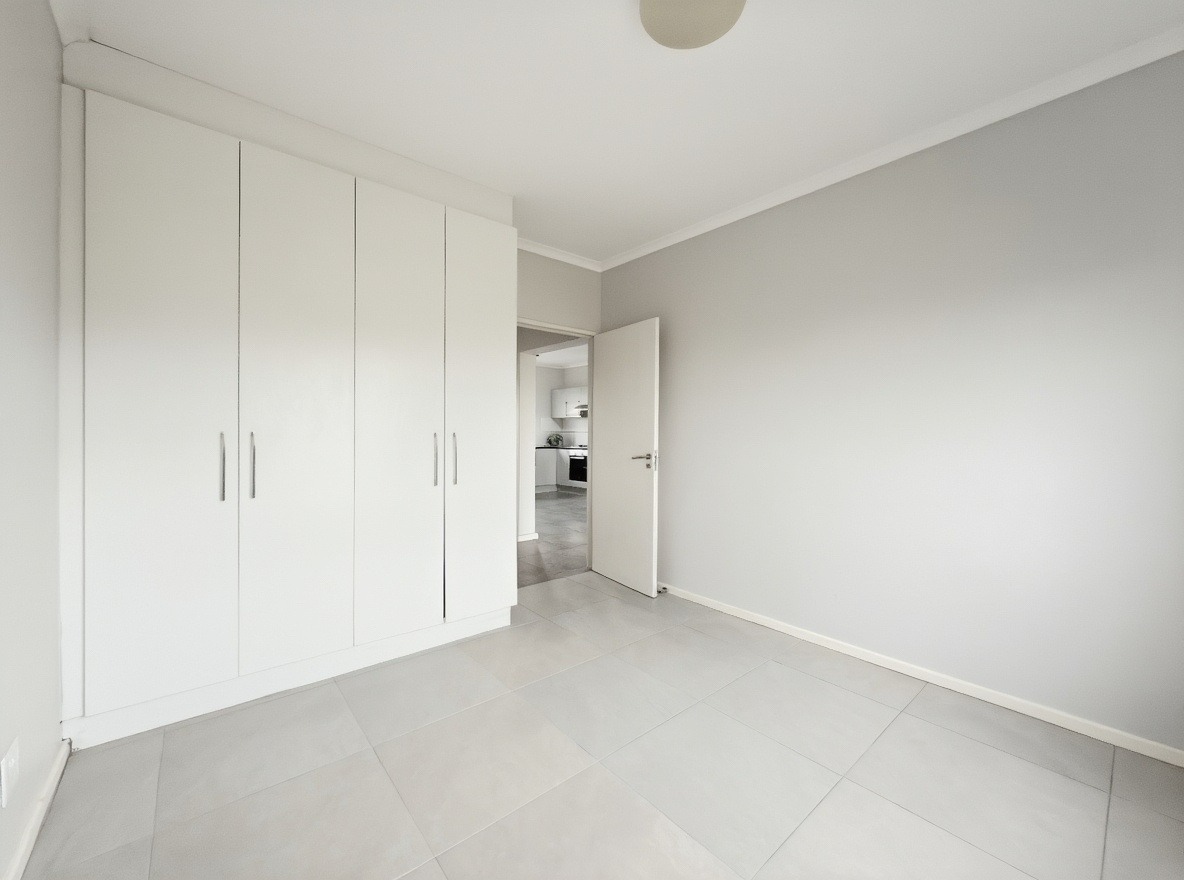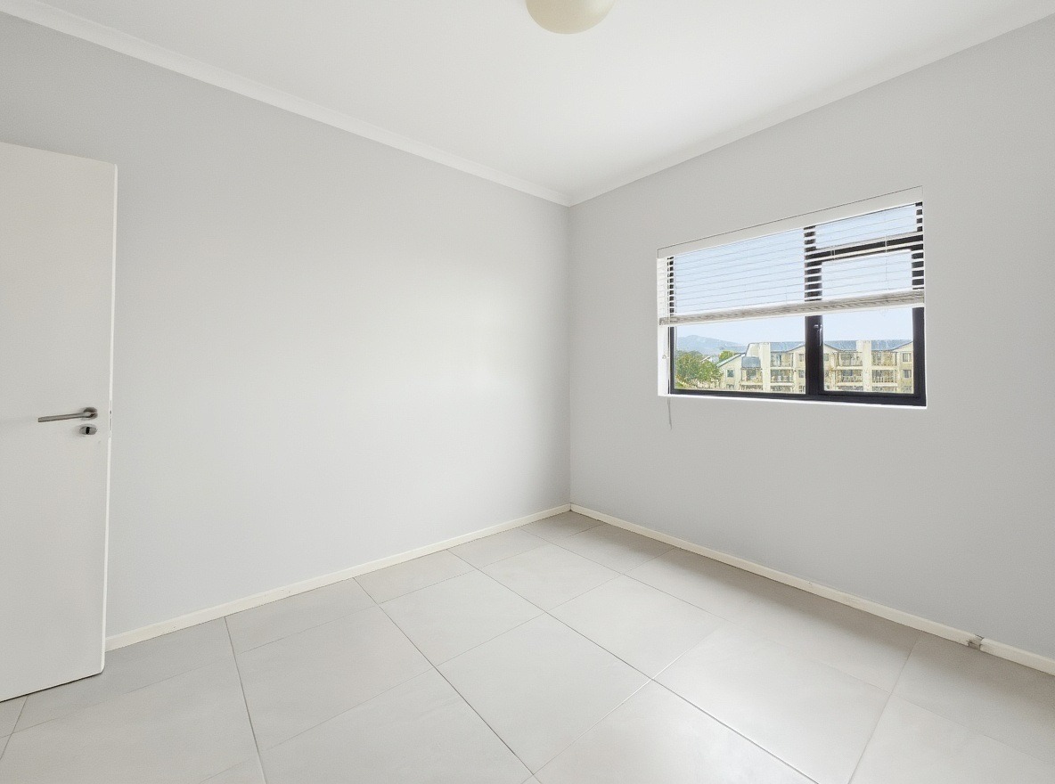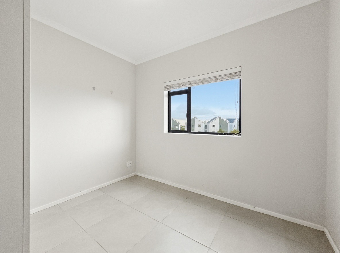 The security estate offers a swimming pool, a small communal braai area, and a shared laundry facility. One allocated open parking bay is included. Security features include access-controlled entry and 24-hour security.