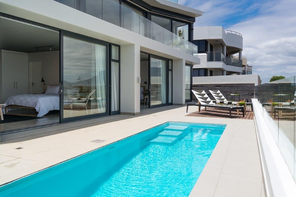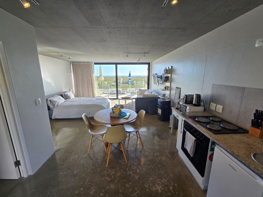 Offering a spacious living area with kitchenette fitted with oven & hob, open plan to the bedroom, with large sliding stack doors opening up to the best view that Cape Town has to offer.