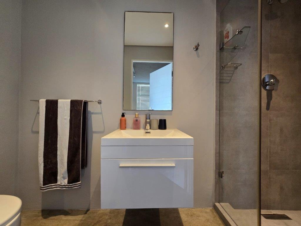 Designed for comfort and easy living, the apartment offers a light-filled open plan living area with a modern kitchen, flowing seamlessly onto a patio and pool area—ideal for relaxing while enjoying uninterrupted sea views stretching towards Table Mountain.